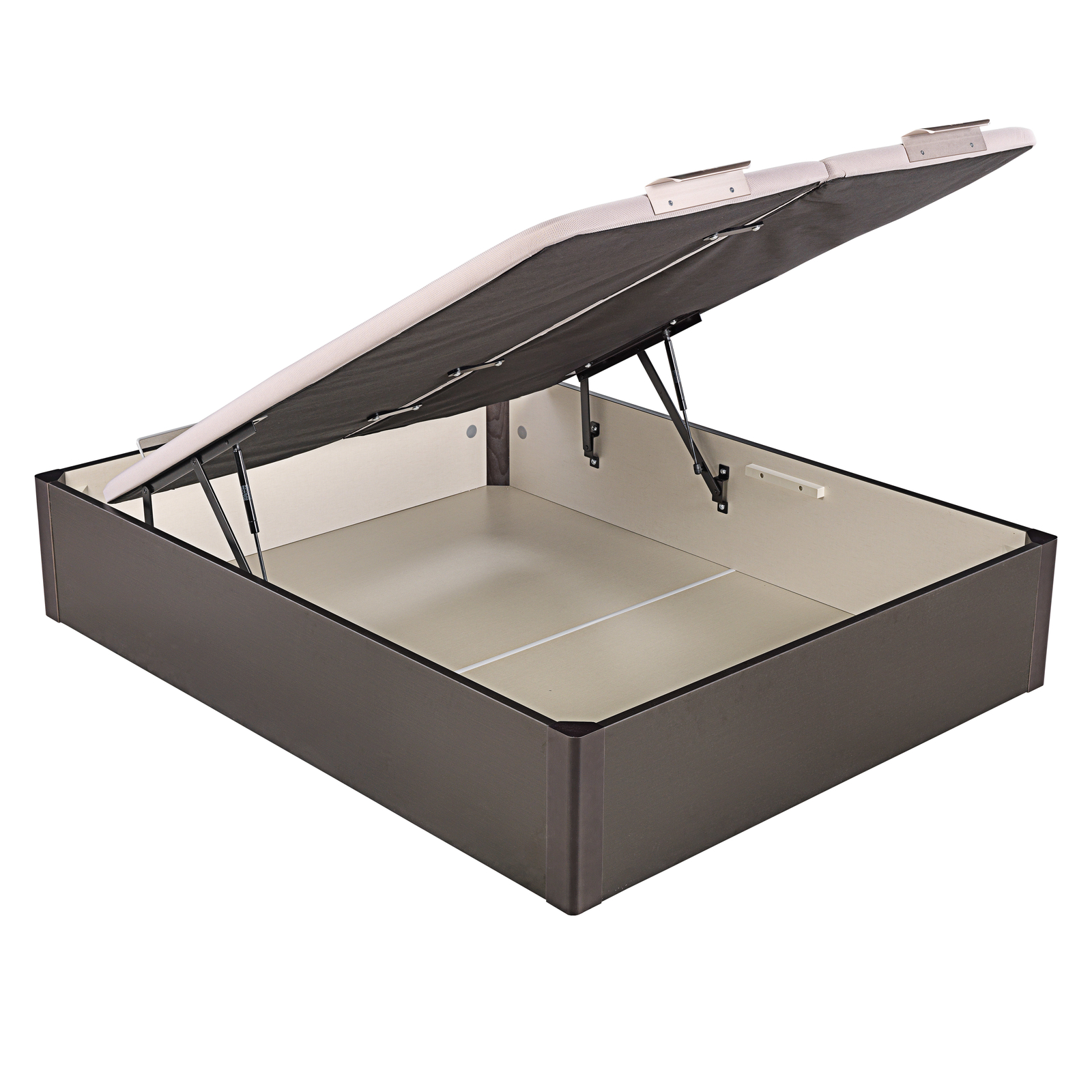 El nuevo canapé abatible Design, de alta capacidad y tapa doble de Pikolin, ha sido creado y adaptado a las últimas tendencias en decoración, consiguiendo aportar un ambiente de modernidad y elegancia en el mobiliario para dormitorios, adaptándose a las necesidades o preferencias de cada usuario. Este canapé abatible está formado por una única cubeta y dos tapas abatibles. Si quieres este canapé con una tapa, consulta el modelo AP11806. La tapa es transpirable de máxima durabilidad e incorpora una estructura metálica de acero de gran resistencia y un tapizado con tejido 3D transpirable aportando la tecnología Base Air System (B.A.S). Tiene un tirador de aluminio y un arquillo que sujeta el colchón. Es un sistema de fácil apertura frontal mediante amortiguadores neumáticos. La cubeta está formada con esquinas rectas de madera maciza, que permiten un ensamblaje de máxima calidad y el fondo es estratificado en madera para el perfecto apoyo de los objetos que se depositen.