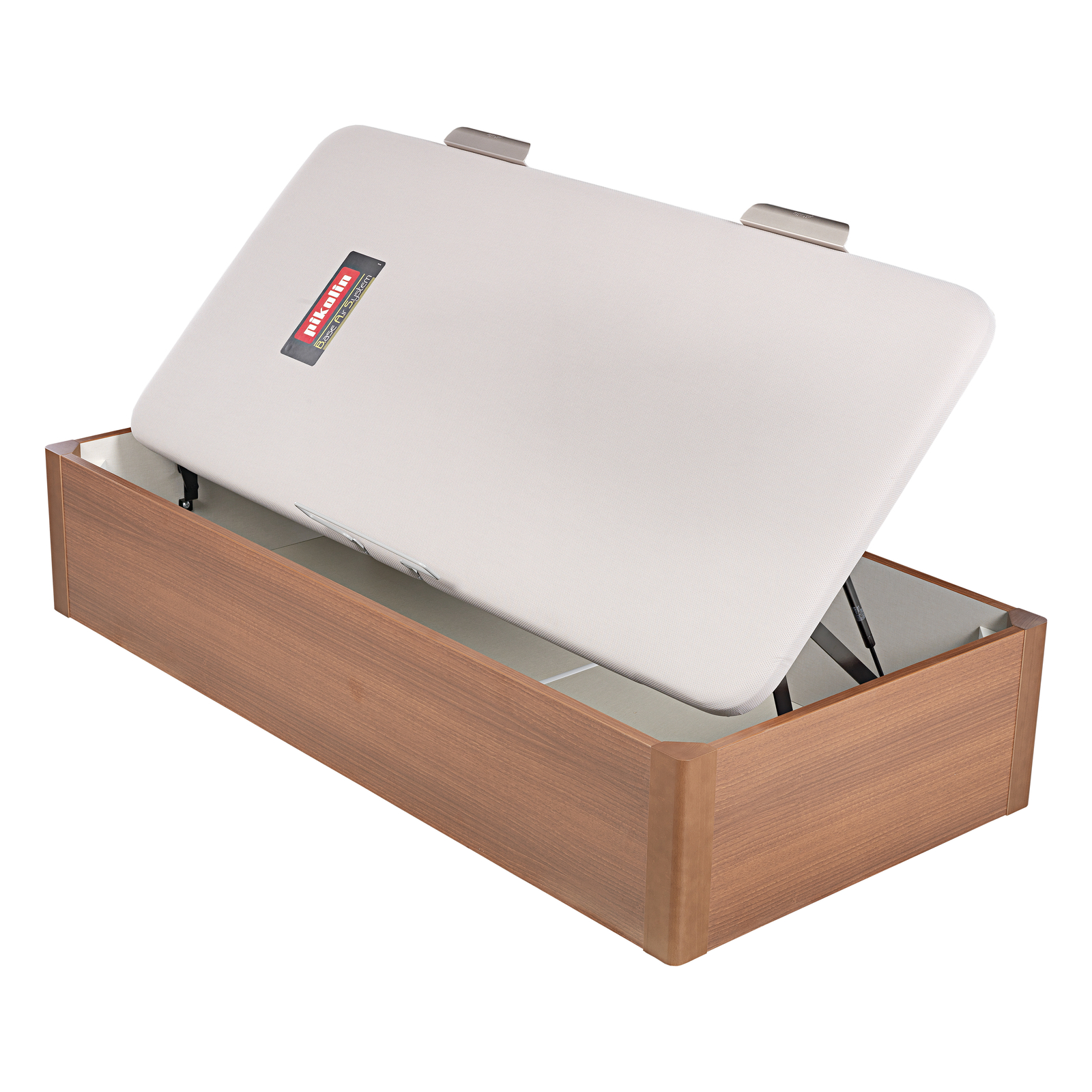 Este canapé abatible Juvenil de apertura lateral es una base resistente que le ofrecerá un almacenaje extra, muy útil para habitaciones juveniles, además de favorecer la vida media y la firmeza adicional de su colchón necesaria para el descanso de los más jóvenes. La tapa transpirable Base Air Sytem (B.A.S.) está fabricada con componentes internos y tejido 3D para facilitar una ventilación y aireación óptima del equipo de descanso. Tapa oculta en la cubeta. Tiene dos tiradores de aluminio anodizado con identificación de marca y un arquillo lateral que sujeta el colchón. La apertura es lateral mediante amortiguadores neumáticos y tiene fácil accesibilidad al interior desde todos los ángulos. La cubeta está fabricada en laminados de alta calidad con esquinas rectas de madera maciza, que permiten un ensamblaje de máxima calidad.